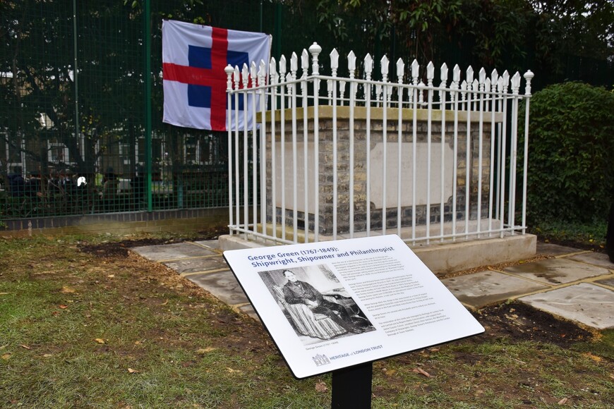 The restored George Green tomb in Trinity Gardens, Poplar was unveiled on October 3rd, 2024, paying tribute to one of the most important 18th-century shipwrights in the East End.