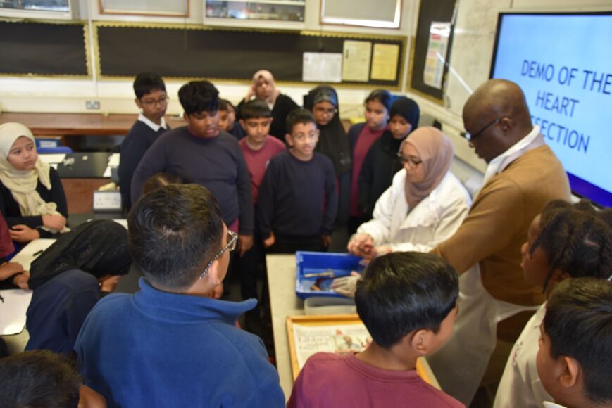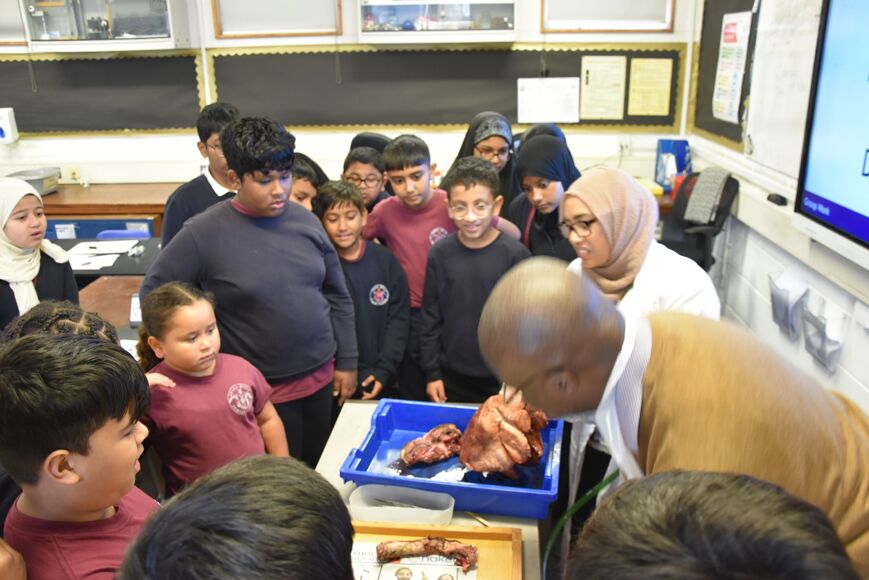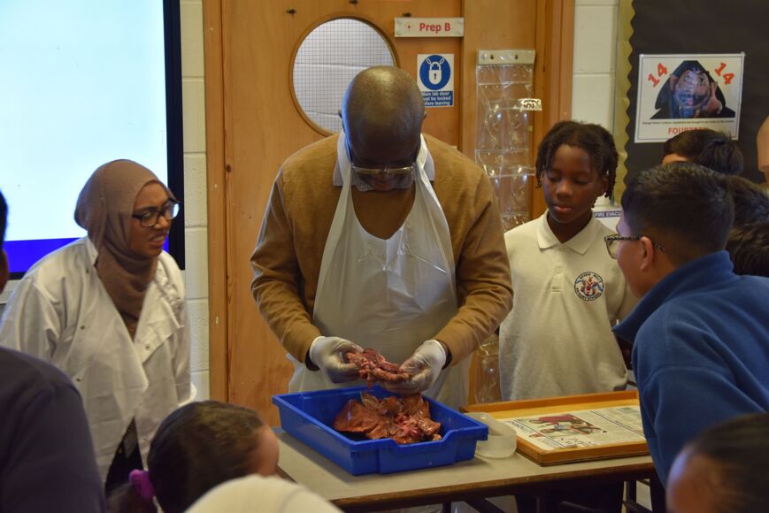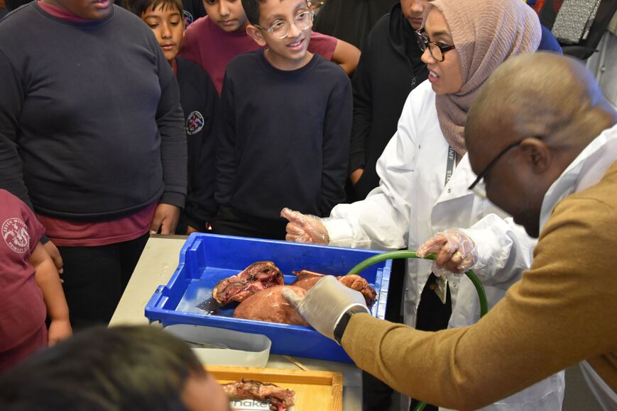 It was a pleasure to welcome you to George Green’s School to explore the wonders of the human body. Pupils observed a heart dissection, had the chance to feel real sheep hearts and lungs, and even saw the lungs inflate and deflate using a pump. They learned how blood flows around our body to make one heartbeat — fantastic curiosity and enthusiasm all round!